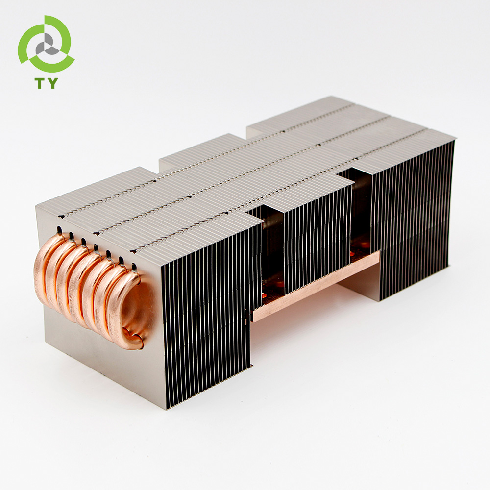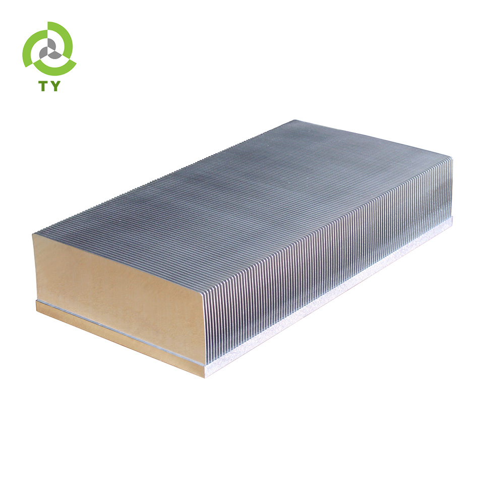 同裕熱能近年來(lái)加強(qiáng)對(duì)強(qiáng)制風(fēng)冷技術(shù)應(yīng)用的研發(fā),實(shí)現(xiàn)了強(qiáng)制風(fēng)冷用于風(fēng)能變流器、光伏逆變器、SVG等大功率機(jī)器的散熱。使用大功率鏟齒散熱器+風(fēng)扇或大功率鏟齒散熱器+熱管的散熱方式,可大大提高散熱效能。